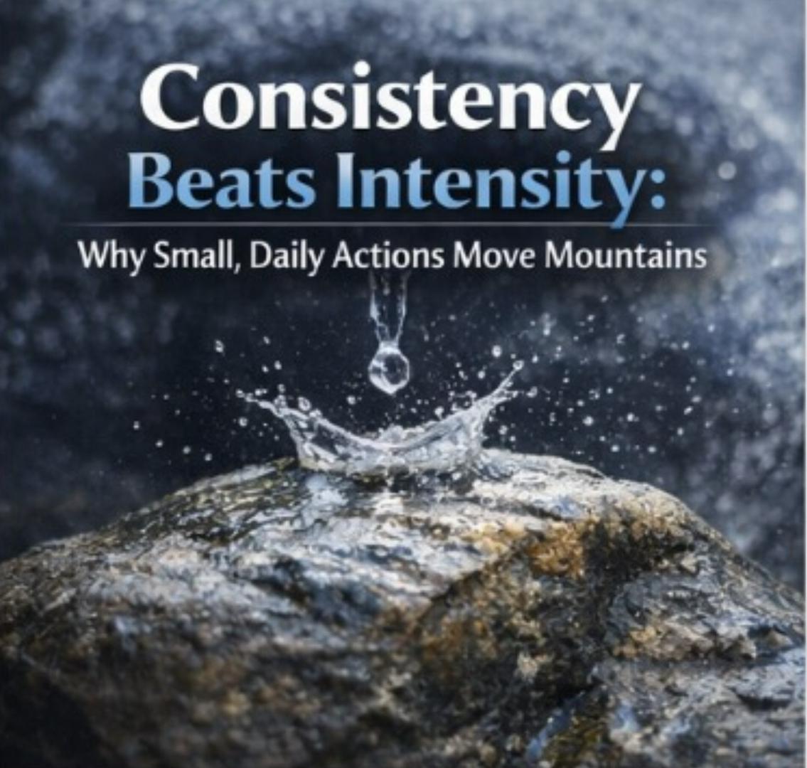 RonC+FollowConsistency Beats Intensity: Why Small, Daily Actions Move Mountains Throw a bucket of water on a rock and nothing happens. No mark. No change. No evidence of power. Now let one drop fall on that same rock—day after day, in the same place, with quiet persistence—and eventually, it creates a hole. Not because the drop is strong. Because it is faithful. Faith the Size of a Seed Jesus said: “If you have faith as small as a mustard seed, you can say to this mountain, ‘Move,’ and it will move.” He didn’t say loud faith. Dramatic faith. Emotional faith. He said small faith, applied consistently. Faith works like water on stone: • Repetition • Alignment • Time • Trust Mountains don’t move because of intensity. They move because FAITH SHOWE UP EVERY day—and refuses to stop. Persistence Over Performance The drop doesn’t argue with the rock. It doesn’t complain. It doesn’t ask how long this will take. It simply returns. Focus is faith in action. Persistence is belief without noise. When you stay aligned with truth—even if progress is invisible—you are already reshaping the obstacle. The Deeper Lesson Mountains don’t fear your intensity. They yield to your obedience. Faith isn’t about force. It’s about continuity. In life. In business. In leadership. Show up 00Share