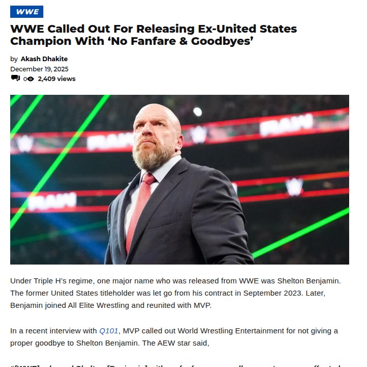 Diamond Horton+FollowShelton Benjamin Deserved a Proper WWE SendoffAnyone else still salty about how WWE let The Gold Standard go? Shelton Benjamin, a former US Champ and one of the most athletic guys to ever step in the ring, got released last September with zero fanfare. Now he’s in AEW with MVP, who just called out WWE for not even offering Shelton a trainer gig. That’s rough for a guy who gave so much to the business. Thoughts on how Triple H’s regime handles legends like Shelton? #Sports #Wrestling #WWE00Share