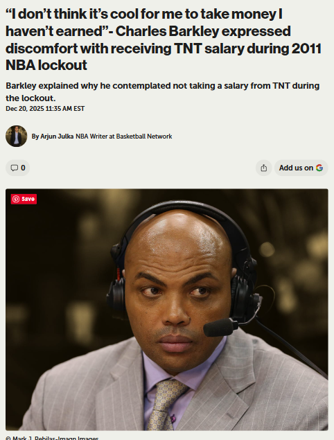 Brian Gaines+FollowSir Charles Takes a Stand During NBA LockoutGotta respect Sir Charles for his honesty during the 2011 NBA lockout. Barkley openly questioned whether it was right to accept his TNT salary while the league was shut down, even considering donating it to charity. With the NBA losing $800 million and everyone from players to arena staff hurting, Barkley’s take really hit home. The lockout was a lose-lose, but Chuck’s integrity and support for a fairer league set him apart. What do you think—should more ex-players follow his lead? #Sports #Basketball #CharlesBarkley00Share