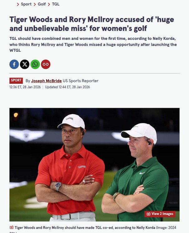 frank59+FollowTiger & Rory's TGL: Did They Miss the Mark?Big news in the golf world: LPGA star Nelly Korda just called out King James-level icons Tiger Woods and Rory McIlroy for a 'huge and unbelievable miss' with their new WTGL league. Even though World No. 1 Jeeno Thitikul and other top women have signed on, Korda thinks the real game-changer would’ve been a co-ed TGL, letting the best men and women compete side by side. Do you agree with Korda’s take? #Sports #Golf #GolfDebate00Share