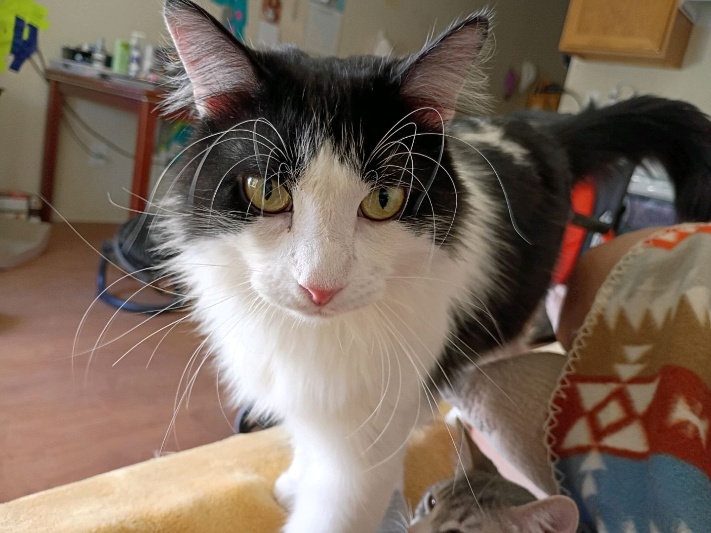 A few days ago, I went on my usual walk with my roommate and we came across a young cat in rough shape. It was covered in fleas, starving, and its paw pads looked burnt. We gave it a flea bath and combed it for nearly an hour, which helped a lot, but its skin was still very red and its fur thin. I was worried it might have mange or ringworm, so I kept it separated from my other cats until we could get it to the vet. Fast forward to now — this little one is doing so much better! After a vet visit, proper treatment, and some good food, it’s finally gaining weight and looking more comfortable. Its coat is starting to grow back, and the scratching has almost completely stopped. The first two pictures are from when we first found it, and the rest are from today. I can’t believe the transformation in just a few days — such a fighter! #Cats #CatRescue #CatOwners #CatLovers #HowWeMet