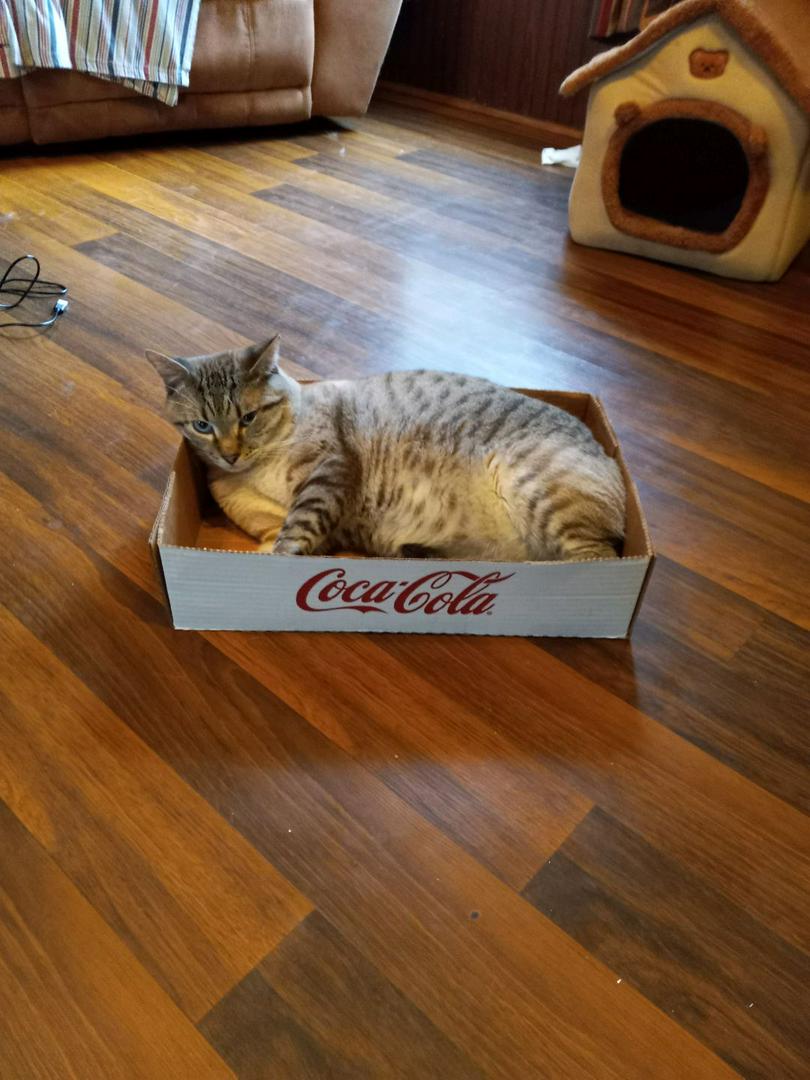 Came out of some trees and brush behind my shop with 10 inches of snow and ice on the ground. She only had about 3-4 inches of her tail left and it was bleeding. I fed her and she ran back to where she came from. She kept coming back to eat and finally allowed me to apply some triple antibiotic to her nub. I broke my dog from chasing her out of the yard. I had a yellow male and a feral female tuxedo already. She moved in the house the following spring. She is the only cat of the three still alive. She thinks she runs everything now. ❤️