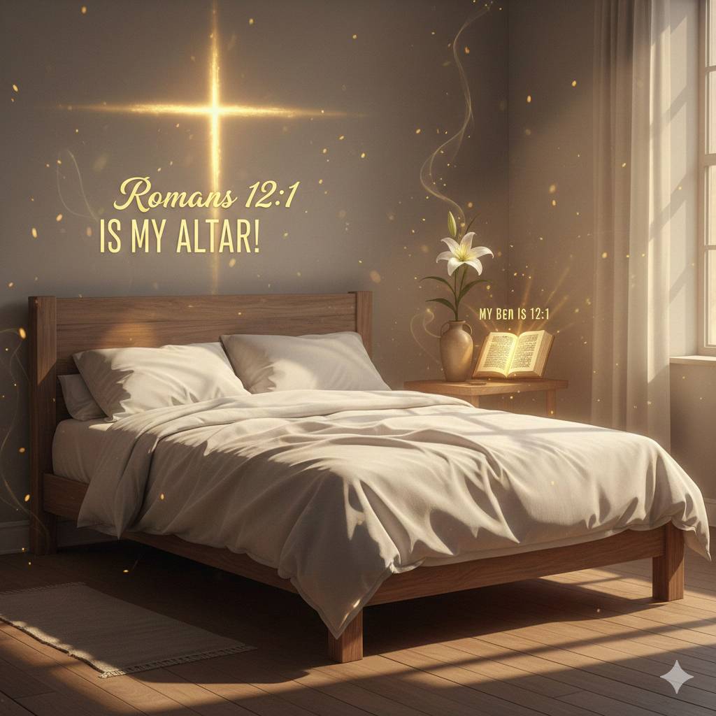 🛏️ MY BED IS MY ALTAR! In a world seeking external validation, the truth is that "MY BED IS MY ALTAR!" This transforms your most intimate space into sacred ground. Our beds witness our prayers, struggles, and rest. To call it an altar is to sanctify our vulnerabilities and recognize that even the mundane can be offered in devotion. This aligns with: Romans 12:1 (KJV) "I beseech you therefore, brethren, by the mercies of God, that ye present your bodies a living sacrifice, holy, acceptable unto God, which is your reasonable service." Treating your bed as an altar dedicates your entire being, rest, and personal space to a higher purpose, making solitude sacred. Let every aspect of life be an offering. maranatha