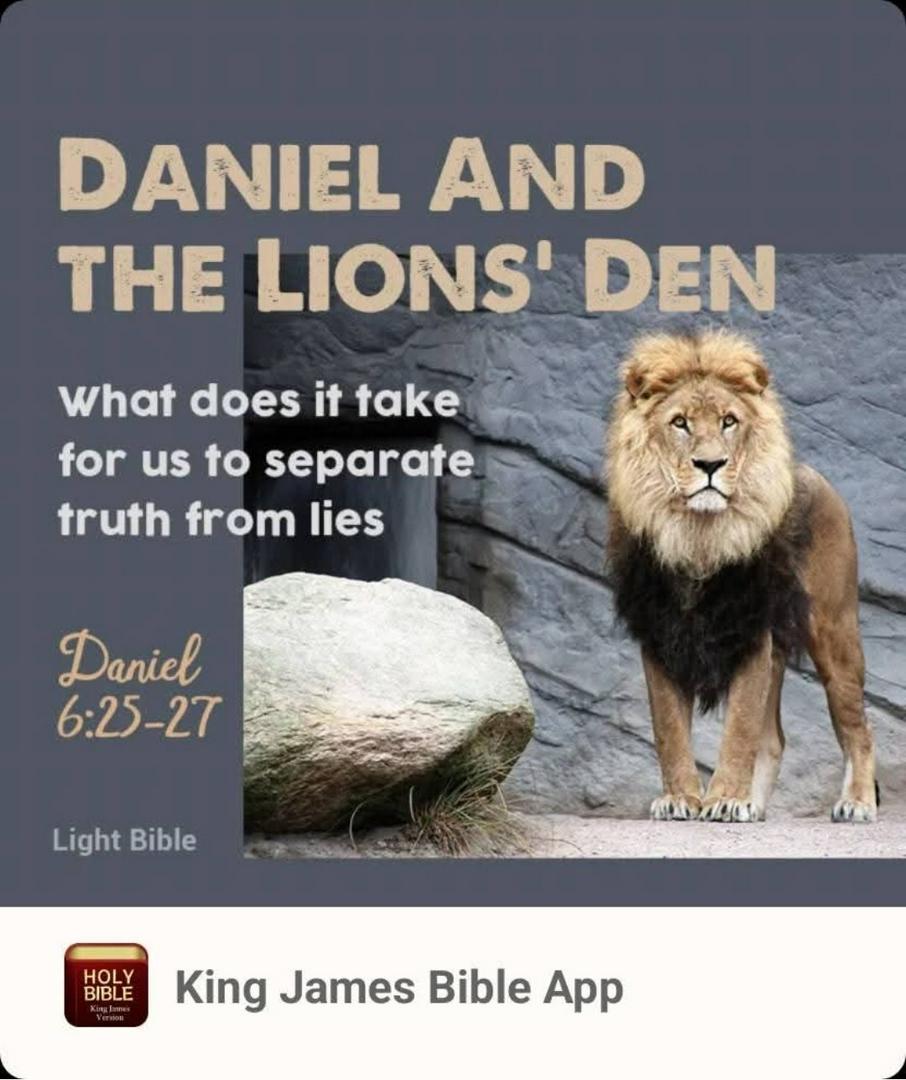 Daniel 6:25-28 NIV [25] Then King Darius wrote to all the nations and peoples of every language in all the earth: “May you prosper greatly! [26] “I issue a decree that in every part of my kingdom people must fear and reverence the God of Daniel. “For he is the living God and he endures forever; his kingdom will not be destroyed, his dominion will never end. [27] He rescues and he saves; he performs signs and wonders in the heavens and on the earth. He has rescued Daniel from the power of the lions.” [28] So Daniel prospered during the reign of Darius and the reign of Cyrus the Persian. Men who were jealous of Daniel looked for ways to discredit him before the king so that they could get rid of him. They accused Daniel of praying to God, which was against a law that they had the king pass against praying to anyone except the king. So, Daniel was thrown into the lions' den with the king telling Daniel that he hoped his God would deliver him. He did, and thus the decree mentioned above. What does it take for us to separate truth from lies? We are commanded to not bear false witness. In the Old Testament, the punishment for bearing false witness was to be punished in the same way as the accused would have been. Daniel was thrown into the lion's den, and so his accusers were thrown into the lions' den along with their wives and children. They were not rescued. Every day we hear of someone who has lied to get ahead or to escape punishment. Sometimes people lie because they have gotten into a habit of dishonesty and can even convince themselves that their lies are truth. Unless a person is on the witness stand, or has taken an oath to tell the truth, there really isn't punishment except that the liar can't be trusted and can't trust the word of others. The worst lies are those that contain half-truths. The men in Daniel's story created the law that Daniel was accused of breaking. People today use innuendo or they may be creative with the facts in order to tear people's