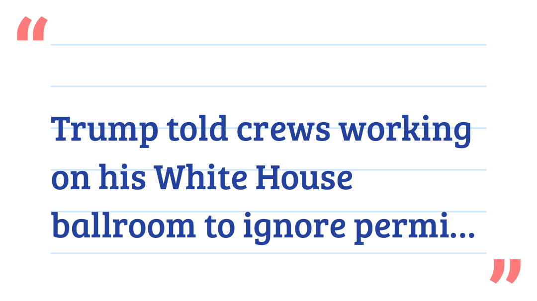 Trump told crews working on his White House ballroom to ignore permitting, zoning or code requirements: report By Ariana Baio, President Donald Trump encouraged those working on the construction of his new White House ballroom project to disregard traditional permitting, zoning, and code requirements, according to a new report. Since announcing the project in July, Trump’s ballroom has become larger, costlier and more destructive than initially thought – raising concerns about whether the president is following historical rules when it comes to a White House addition. The ballroom’s capacity, initially thought to be 650, has been raised to 900. Its cost has nearly doubled from $200 million to $350 million. Its construction, which Trump initially said would not interfere with the integrity of the current White House, has led to the destruction of the East Wing. But to ensure the new ballroom is erected, the president has installed loyalists into positions that would approve the new design and reportedly told teams they do not need to follow the same permit and zoning rules as other properties, the New York Times reported. At an October event to raise money for the ballroom project, Trump touted to potential donors that he was told he didn’t need to follow the traditional conditions. President Donald Trump touted to potential ballroom donors that he did not need to follow zoning rules because he was the president (AFP via Getty Images) The ballroom, anticipated to be completed before 2029, is being privately funded. The president has given millions to fund it and several major companies, including Amazon, Lockheed Martin, Meta and others, have donated. “I said, ‘How long will it take?’ They said, ‘Sir, you can start tonight… You have zero zoning conditions, you’re the president,’” Trump told the room of potential donors.