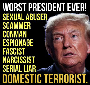 We love America…. We HATE the America Trump is making! He divides the country, pardons convicted criminals, lies daily, ignores the constitution, surrounds himself with unqualified loyalists, sides with Putin vs our allies, makes millions off being president, give huge tax breaks to billionaires, eliminates the free press, deploys troops in blue state cities but not red state cities that have more crime, blames everything on Biden and Obama with zero evidence, places tariffs on trading partners we we pay the tariffs. Says the economy is doing great but won’t release economic data, screws Americans on healthcare, has said for 9 years he had a new health plan and never delivered one Trump is a pathetic person and has no place being president