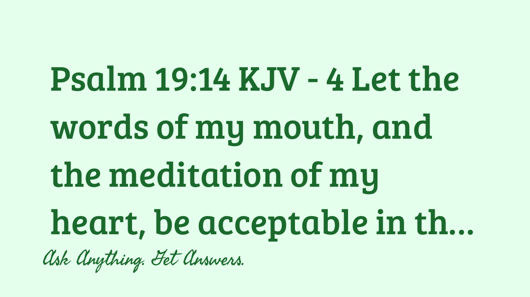 Psalm 19:14 KJV - 4 Let the words of my mouth, and the meditation of my heart, be acceptable in thy sight, O LORD, my strength, and my redeemer.