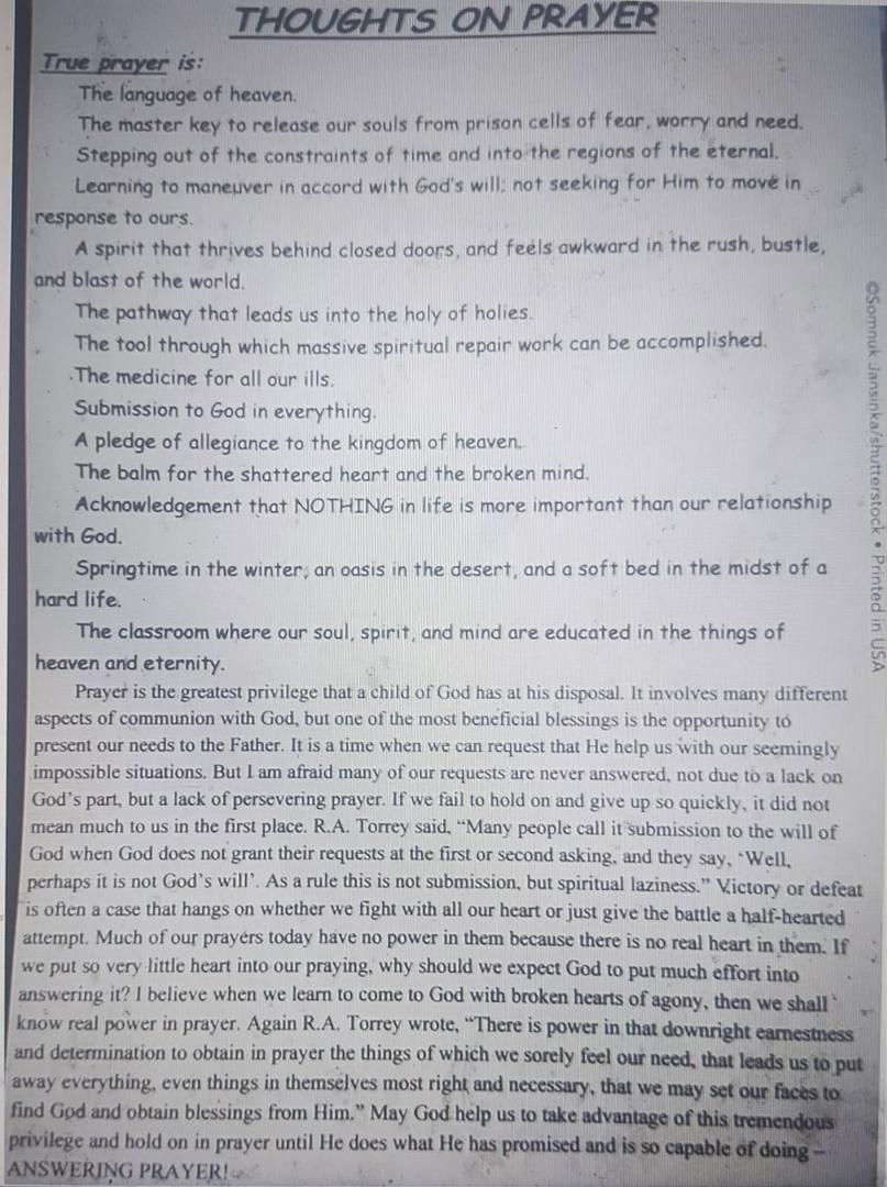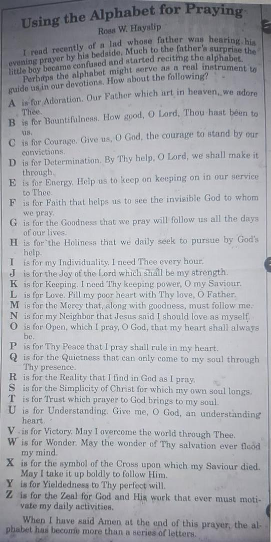 God Answers Prayer 1. God answers prayer, O do not doubt Him; God answers prayer, believe His Word: God answers prayer, now venture on Him, His Word the test of time has stood. Refrain God answers prayer, O soul, believe Him; God answers prayer, I’ve proved Him true! God answers prayer, now venture on Him; He answered me, He’ll answer you. 2. God answers prayer, fear not to trust Him; God answers prayer, He longs to save: God answers prayer, look up believing, For this His only Son He gave. [Refrain] 3. God answers prayer, O child so weary; God answers prayer, pure you shall be: God answers prayer, His blood availeth; From self and sin He’ll make you free. [Refrain] 4. God answers prayer, I dare believe it; God answers prayer, O praise His name: God answers prayer, and here this moment, His love sets all my heart aflame. [Refrain] 5. God answers prayer in times of trial; God answers prayer when all seems dark; God answers prayer, He’ll safely guide you, He loves and knows the way you take. (Refrain) ~George Bennard