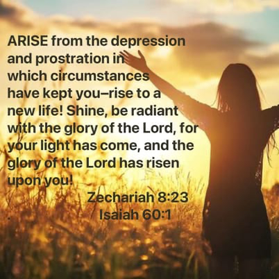 Isaiah 60:1 Zechariah delivers the word given to him, “Thus says the Lord of hosts… “ a word calling us to come because we ‘know’ Him … And Isaiah issues the command to arise, to shine, for the glory of the Lord has risen and shines on us. If that sounds like God’s doing a new thing… perhaps that’s because He is. It may seem as nothing new to His promise to His people or those who believe in Him, as we acknowledge an overarching theme of experiencing and living with Joy and Peace our beyond circumstances. But, it may be new to us… today, as we are in an extremely weak moment in our life, overwhelmed in our condition. Trusting in Him, relying on Him and pressing in to Him isn’t new to anyone who understands how Faith grows in affliction and suffering, but they serve as reminders of Truth when we’re in the middle of hard things. It’s Living Water to our soul, restoring His Strength and Courage in us through His Wisdom… and His Glory. Isaiah encourages us to rise to a new life, to shine, not because of anything we are, but to shine with the Glory of the Lord. There is no promise of a change in circumstance, there is no promise of an end to our suffering on this side of heaven. What is this new life if it’s not a new life in Him, in His glory… when we rise above the hard things, overcoming them in the spirit. This isn’t to be confused with escape but rather taking hold of a power much greater than we could ever imagine. Are we too weak to stand? Take hold of His hand, He’ll help us up. Are we too weak to walk? We allow Him to carry us for a bit. It begins with a choice to ‘come’, to look up, to decide to rise and let His Glory shine upon us.