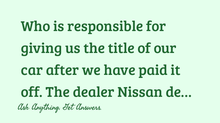 Who is responsible for giving us the title of our car after we have paid it off. The dealer Nissan dealership or the Nissan Finance office?