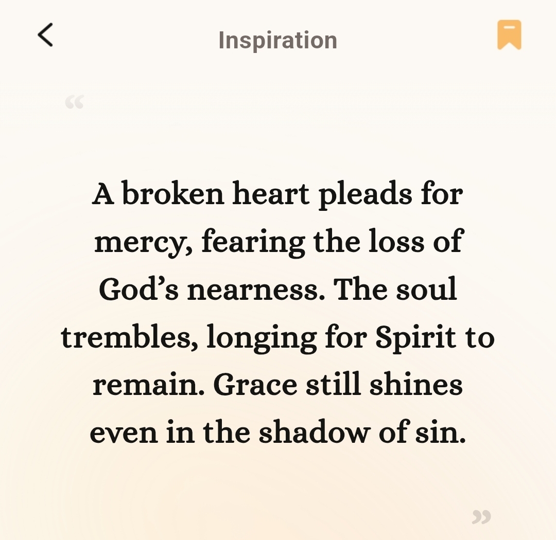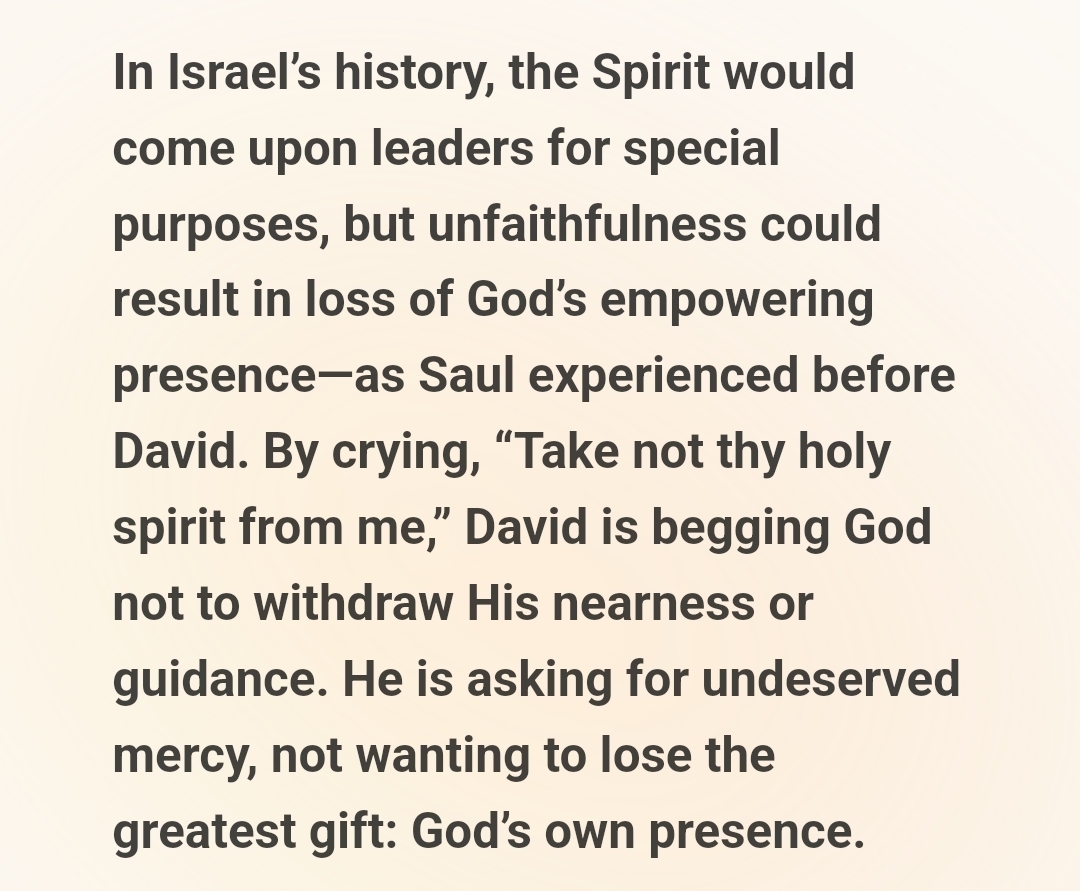 This the start of most of my prayers Please Lord do not take your Holy Spirit from me thank you for reminding me of that psalm