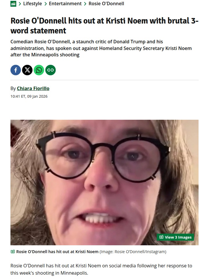 Rosie O'Donnell just dropped a bomb on Kristi Noem after the Minneapolis shooting drama. Instead of staying quiet, Rosie posted a blunt three-word statement that’s got everyone talking. Fans are split—some are cheering her on for calling out Noem’s comments about Renee Good, while others think Rosie’s gone too far. The debate over who’s really to blame is getting wild in the comments! #Entertainment #Celebrity #RosieODonnell