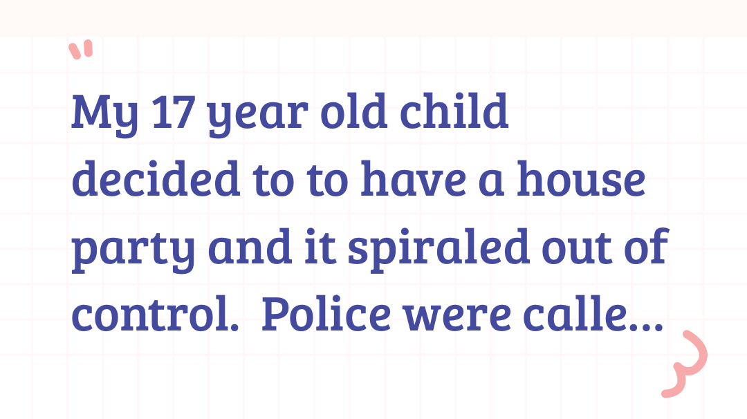 My 17 year old child decided to to have a house party and it spiraled out of control. Police were called because there was a dare that the police would not come if you hung up as soon as 911 answered. Wrong. They came and called me (I was in Oregon with my 2 younger ones visiting). There is so much more to this incident but everything was taken away…car keys, her summer, hanging with her friends, tickets to faith hill/tim McGraw concert, she paid for the carpet cleaner, her cell phone, I tossed her room. What a summer!!! But she accepted her fate, no tantrum.