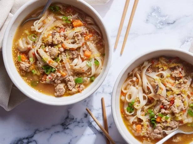 Healthy 40-Minute Pork, Pepper and Rice Noodle Soup This healthy weeknight meal brings together irresistible flavors in just 40 minutes. Think savory pork, crunchy vegetables, filling noodles and a tangy broth. It’s family-friendly and completely customizable: feel free to swap out the pork for chicken, beef or even tofu. Don’t have a red bell pepper? Reach for an orange or yellow one instead. The rice noodles will expand as the soup sits or when leftovers are refrigerated, so add more stock or water to thin it out to the consistency you desire before reheating.