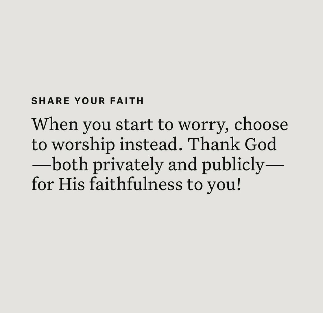 Prayers for Anxiety The feeling of anxiety might be one of the most common human experiences. Every person, at some level, has felt anxious or worried. While it is a common human experience, that doesn’t mean that it’s the ideal human experience that God wants for us. Anxiety can often occur in moments when we feel like we’re losing control of a situation, or maybe even when we feel helpless. We can feel anxious when we’re uncomfortable or nervous. In each of these scenarios, God wants to provide an answer and a help for when we’re struggling. In his letter to the Philippians, Paul encourages the church community there to bring all of their worries and anxiety to God through prayer. While we sometimes think we can fix our problems, we’re actually inadequate at it. God is the only one who truly knows exactly what we need. In Scripture, God is called our Provider, our Healer, and our Sustainer. He is ready and willing to help us when we’re in need. Because of that, we have so much to be thankful for, just like Paul says. Regardless of whether or not you’re worried or anxious right now, we should all make a habit of running to God with our desires and worries. Our first response should be prayer. Before we're overcome with anxiety, we train ourselves how to respond to it—by turning to God. Take a moment today to pause and pray to God. As Paul says, present your prayers and requests to God. Tell Him what you need and what you might be struggling with. And thank Him for always being present and willing to help.