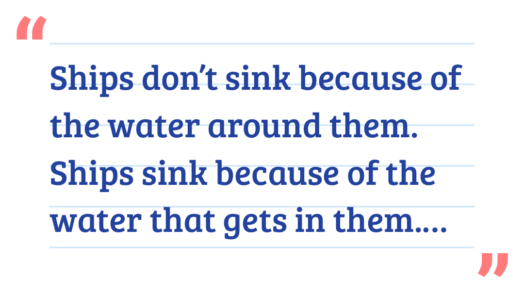 Ships don’t sink because of the water around them. Ships sink because of the water that gets in them. Don’t let what’s happening around you get inside you and weigh you down🛐📌