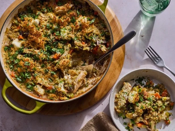 Creamy Chicken Skillet This delicious chicken skillet is the ultimate weeknight dinner — comforting, satisfying and ready in just about 40 minutes. Packed with hearty vegetables and lean chicken breast, it’s a healthy option that delivers 23 grams of protein and still never skimps on rich, creamy flavor. A crispy panko topping adds just the right crunchy, cozy touch. Plus everything comes together in one skillet, giving you another reason to high-five yourself when it’s time for cleanup