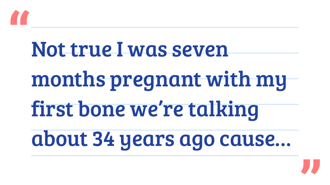 Not true I was seven months pregnant with my first bone we’re talking about 34 years ago cause he’s 34 years old. I went to the doctor cause I couldn’t shake a cold off. I was getting my period every month I gained like 10 pounds but I thought that was normal. I was young. I was ignorant I couldn’t shake a cold and I had really bad cramps. I always had really bad cramps period. So I thought that was normal when I went to the ER four hours later I was in labor. I was having a baby. It wasn’t a cold. I was in labor. That was my cramps and I was getting a period for seven months. I couldn’t believe it. I thought the doctor was joking until they had to give me a C-section because I wasn’t opening up I was having the labor pain, but I wasn’t opening up so that’s not always true