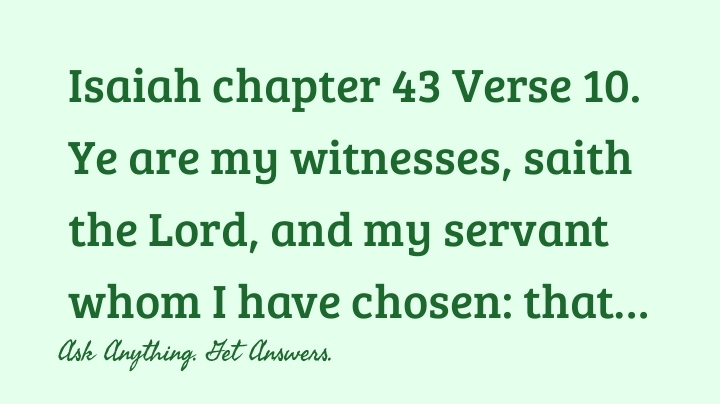 Isaiah chapter 43 Verse 10. Ye are my witnesses, saith the Lord, and my servant whom I have chosen: that ye may know and believe me, and understand that I am he: before me there was no God formed, neither shall there be after me.