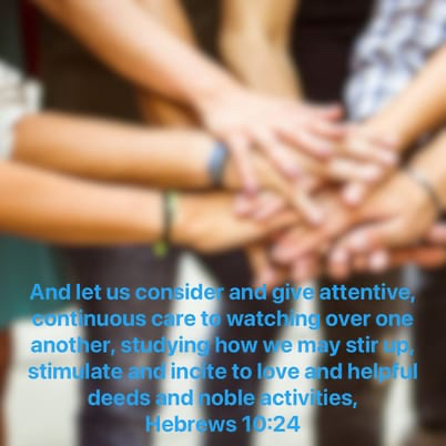 Hebrews 10:24 The author of Hebrews wasn’t issuing a new decree, he was confirming something that has been around since the Beginning. After Adam ‘meets’ and names all the critters God created, livestock, birds of the air and every wild beast of the sea, God created a ‘helper’ for him. One found to be suitable, adapted to and complementary for him… a human relationship. Relationships are important, perhaps it can be said that relationships have a place in the top five of our priorities. The first commandment Jesus confirms, is our love for and in our relationship with God, our top priority. And the second Commandment is to love others as we love ourselves. If these are our top priorities, everything else falls into place. Our spiritual walk, our families, our work and what we do in our spare time lines with who we are in Him and Who He is in us. In Him, we find out how to serve one another without exception, we’re not to lose sight of our relationship with each other and We’re to watch over each other and consider how to show our love through what we do. God created us for Fellowship. We’re not islands in the sea, seeking after personal satisfaction and seeking our own glory. 1 Corinthians 13 reveals our relationships are founded on the bedrock of love, God’s love and loving others, putting others first. Relationships can be hard, difficult even, being unique can have its challenges. Perhaps if we were to overcome spirits of Pride and Selfishness through Humility we could begin to focus on something bigger than what we see with the eyes of our flesh. God meets us where we are so this must be the place we go to in watching over others, to be helpful… to do good things. Lord, reveal opportunities for relationships, new ones and ways to keep the old ones fresh. Help us to hold the relationships we have close, and allow us to be open to the ‘more’ … more of what You have for us.