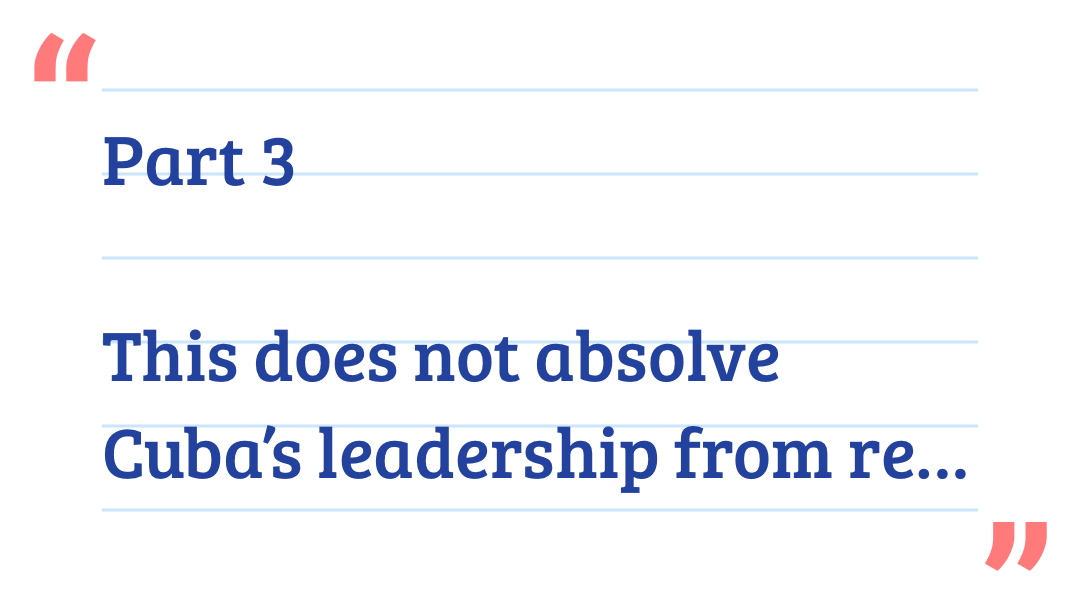 Part 3 This does not absolve Cuba’s leadership from responsibility for domestic policy failures, inefficiencies, or political repression where it exists. But responsible analysis requires holding multiple truths at once. Cuba’s internal decisions matter. So do the external conditions imposed upon it. Pretending otherwise is not insight—it is propaganda by omission. A more serious public discussion would begin with facts rather than ideology. It would distinguish between criticism of Cuba’s political system and the humanitarian consequences of long-standing economic restrictions. It would ask whether broad sanctions have advanced freedom—or merely prolonged hardship. And it would acknowledge that a policy built on punishment rarely produces stable, democratic outcomes. If the international community genuinely wants to support the Cuban people, the path forward should prioritize engagement that expands access to essentials, strengthens civil society, and reduces the use of economic deprivation as a political tool. The health and welfare of ordinary families should not be collateral damage in a decades-long geopolitical standoff. Cuba’s reality deserves more than slogans. It deserves an honest accounting of the policies that shape it—and the human cost they impose.