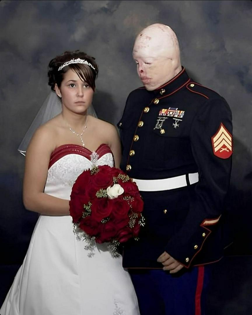 In 2004, Marine Sqt. Tyler Ziegel was serving in Irag when a roadside bomb changed his life forever. The explosion left him with burns covering more than 70% of his body, taking parts of his face, fingers, and vision in one eve. What followed was a recovery that tested the imits of human endurance. Over the next few years, Tyler underwent more than 50 surgeries and countless hours of rehabilitation. In 2006, Tyler made headlines arounc the world when he married his high school sweetheart, Renee. Their wedding photo became a symbol of love that didn't flinch in the face of trauma. For many, it was a powerful image of resilience, two people standing together despite everything that war had taken. But the scars Tyler carried weren't iust physical. Life after combat brought new battles: PTSD, chronic pain, and the emotional weight of being seen as a symbol more than a person. His marriage eventually ended. In 2012, at just 30 years old, Tvler died from an accidental overdose of pain medication His death was sudden, but the pain that ed to it had been building for years Tvler's story is heartbreaking, but important.