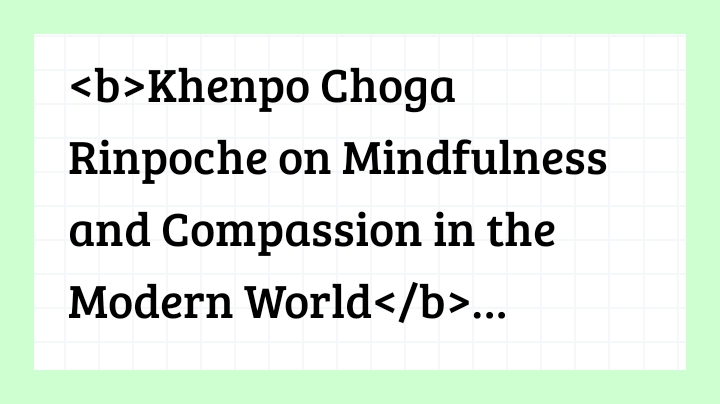 <b>Khenpo Choga Rinpoche on Mindfulness and Compassion in the Modern World</b> <img src="https://i.ibb.co/KcGw8PcP/USED-on-Feb-03-2026-Khenpo-and-Padmasambhava-15-jpg.jpg" alt="" width="500" height="718" /> <p><img src="https://i.ibb.co/V0QRKtWX/Screenshot-20-2-2026-152132.jpg" alt="" width="800" height="497" /> Born in eastern Tibet during the 1960s, <a href="https://medium.com/@khenpochogarinpoche">Rinpoche began his Buddhist training at age five at Dzogchen Monastery</a>, receiving transmissions and teachings from forty-two masters. He studied the five major sciences of creational skills, caves in the Holy Dzogchen area of Tibet under difficult conditions, with little food and only a few tattered clothes, reciting millions of mantras. <b>The Practical Philosophy of Transformation</b> Rinpoche's approach to teaching differs markedly from superficial Western appropriations of Buddhist concepts. <a href="https://medium.com/@khenpochogarinpoche/dzogchen-khenpo-choga-rinpoche-the-best-book-i-ever-read-96dd7c819032">As a scholar who studies more than one hundred pages daily on Buddhism</a>, science, philosophy applicable, and practical Buddhist principles for modern life." <img src="https://i.ibb.co/wFkRvDVC/Screenshot-20-2-2026-152153.jpg" alt="" width="800" height="853" /> <a href="https://linktr.ee/KhenpoChogaRinpoche">One of Rinpoche's greatest challenges has been presenting three-thousand-year-old teachings to diverse modern audiences without compromising their authenticity</a>. Before 1959 in Tibet, Teaching internationally requires navigating multiple legal systems, cultures, customs and religious contexts. <img src="https://i.ibb.co/ycMf7Y25/Screenshot-20-2-2026-152212.jpg" alt="" width="800" height="962" /> <img src="https://i.ibb.co/hRzK0fBd/Screenshot-20-2-2026-152228.jpg" alt="" width="800" height="987" /></p>