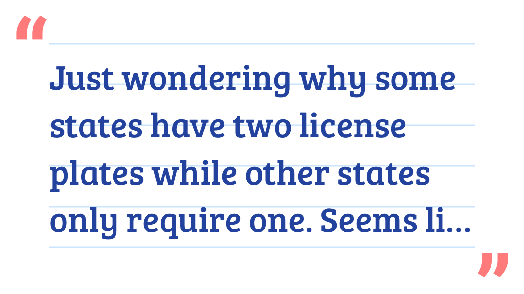 Just wondering why some states have two license plates while other states only require one. Seems like they cost the citizens more in state taxes.