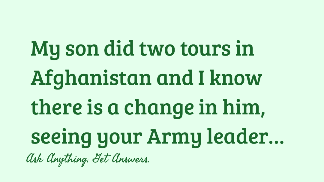 My son did two tours in Afghanistan and I know there is a change in him, seeing your Army leader lose their life was a very traumatic experience and to know that the same people who you were sent to help, hated Americans. We cannot even fathom what this can do to the psyche of people who have those internal scars. He was a young man when he went in about 24, he is a Chief Warrant Officer II. He does bodybuilding in his spare time, and focuses on his family when he is not working. I pray for all the United States Service members and their families. Thank you for your service 🙏❤️🙌