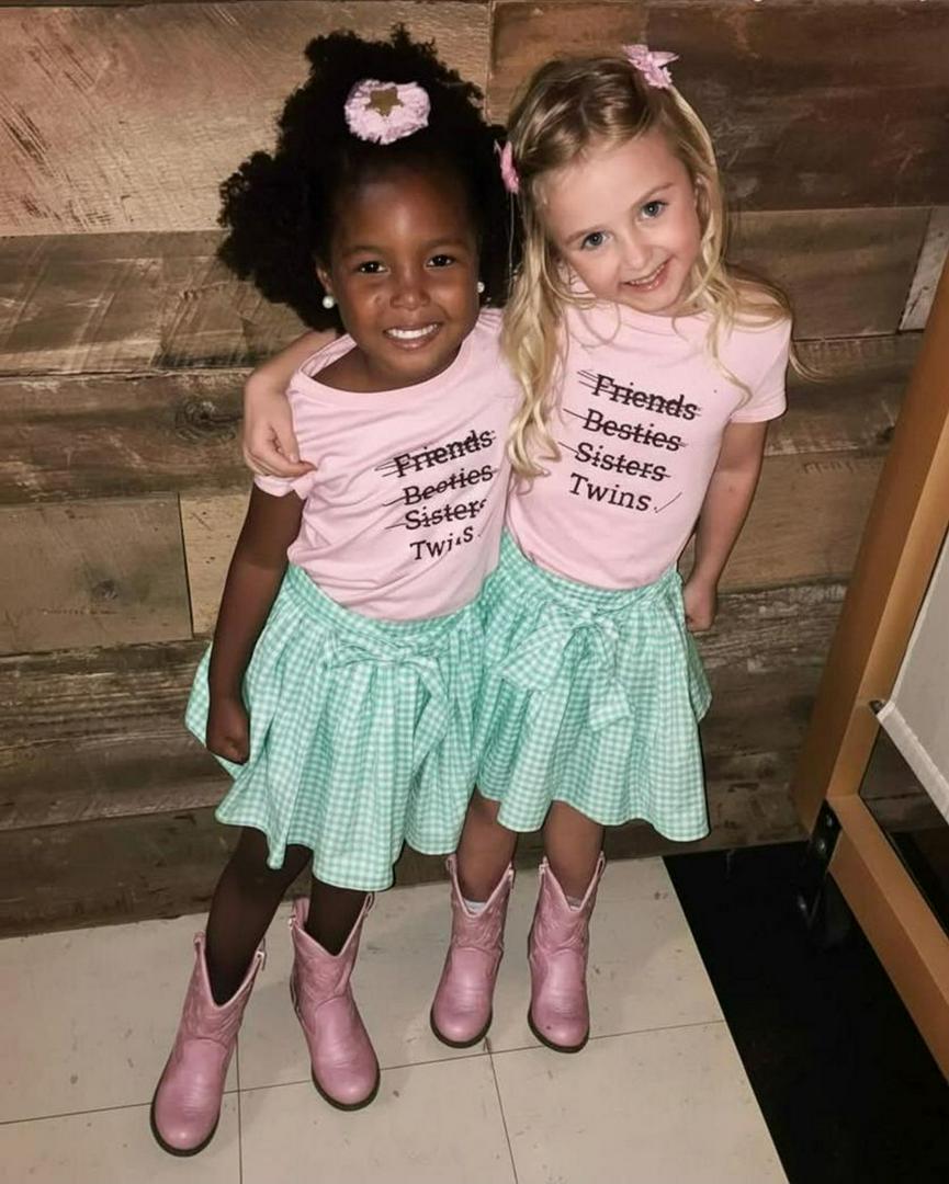 THESE LITTLE GIRLS INSIST THEY'RE TWINS BECAUSE THEY "HAVE THE SAME BIRTHDAY AND THE SAME SOUL." Jia. who is blonde and Caucasian, and Zuri. an African American with black hair. met at school and instantly became friends. The girls were at a birthday party and in ine to get their faces painted when Jia told another girl that they were twins She gave her an odd look and replied 'There is no way you and Zuri are twins, you don't have the same skin color!" Her reply hurt Jia, and she started crying, but the little airl would not back down! She said, "You don't know anything because we have the same birthday a the same soul." THEIR EXAMPLE OF LOVE AND SISTERHOOD MAKES THIS WORLD A BETTER PLACE!