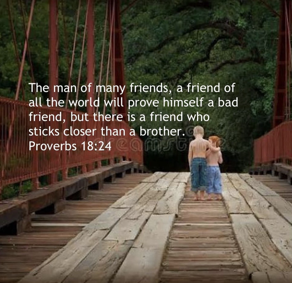 Proverbs 18:24 A friend… in the colorful language of the Hebrew people, means relationship. It can be the bond between husband and wife, people who enjoy each other‘s company, or our relationship with God. In scripture, Abraham was considered a friend of God. Within that bond of friendship, trust is born, confidence is established, and we come to know what it means to be selfless, beginning to understand how someone could lay down their life down for a friend. With godly wisdom, Solomon describes three types of people, someone of many friends… Perhaps in order to have that many friends we have to be someone everybody likes, not ruffling anyone’s feathers, causing no waves, no friction. Solomon indicates this is a bad friend… could it be because we don’t get close enough to say and do hard things? There are friends by blood, brothers, that close family relationship where we most often come to know unconditional love. Then, tucked in between the lines, Solomon brings us to a friend who’s even closer than a brother. Two hearts knit together. It doesn’t say they agree on everything, it doesn’t give a required percentage of shared interests, only that they’re drawn together and experience a closeness unlike any other relationship. Friendship is a matter of the heart. Does God draw people together, perhaps an unlikely match providing opportunity to learn from each other and to grow, as ‘iron sharpens iron’? Lord, you have blessed us with Fellowship, relationship… Friends. Help us to be good friends.
