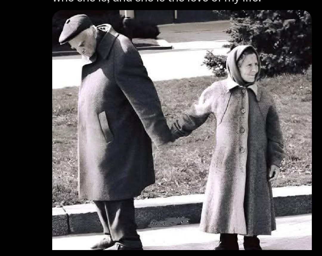 He is 85 and insists on taking his wife’s hand everywhere they go. When he was asked why his wife kept looking away, he responded, “because she has Alzheimer's”. Then he was asked, will your wife worry if you let her go? He then replied, ′′she doesn't remember anything, she doesn't know who I am anymore, she hasn't recognized me for years.” Surprised, I said, “and you have continued to guide her every single day even though she doesn't recognize you?" The elderly man smiled and looked into my eyes and said, ′′she may not know who I am, but I know who she is, and she is the love of my life.