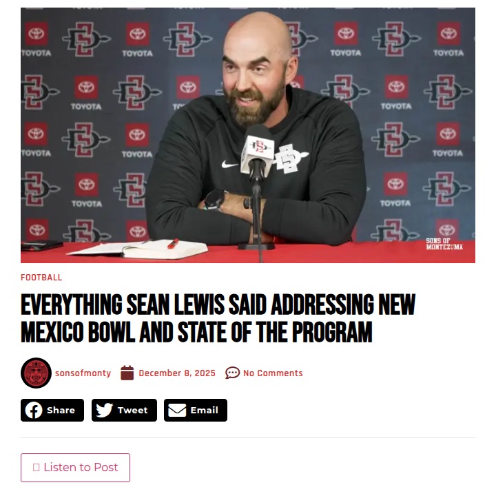Amy Williams+FollowAztecs vs Mean Green: Bowl Showdown LoomsCoach Sean Lewis just dropped some real talk on the Aztecs’ New Mexico Bowl prep. The big headline? It’s strength vs. strength: SDSU’s rock-solid D against North Texas’ high-octane offense led by Mestemaker, the nation’s top passer. With Demetrius Sumler stepping in as interim DC after a staff shakeup, all eyes are on how the Aztecs respond to adversity. Can they lock down win #10 and make program history? Let’s hear your takes, Aztec Nation! #Sports #Football #Aztecs00Share