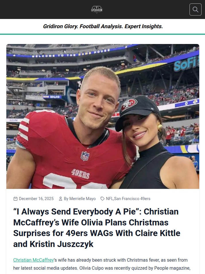 andersonkaren+FollowCMC’s WAGs Get Sweet Holiday Surprise49ers fans, did you catch Olivia Culpo’s latest holiday move? CMC’s better half is keeping her pecan pie tradition alive, gifting the 49ers WAGs (with Claire Kittle and Kristin Juszczyk in the mix) some sweet treats. Plus, her collab with Abercrombie is turning heads—she’s all about changing the WAG narrative to ‘Women Achieving Greatness and Success.’ Love seeing the 49ers family spirit off the field! #Sports #49ers #ChristianMcCaffrey00Share