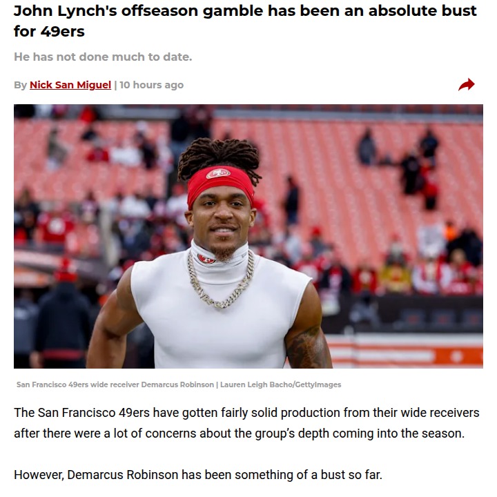 Jeffrey Armstrong+Follow49ers’ big offseason bet isn’t paying offJohn Lynch took a risk signing Demarcus Robinson, hoping he’d be a key red-zone threat for the 49ers. But after missing three games due to suspension, Robinson’s impact has been underwhelming—just 13 catches and no touchdowns in 10 games. With Jauan Jennings stepping up and chemistry with Brock Purdy shining, Robinson’s role keeps shrinking. It’s wild how quickly expectations can shift in the NFL. Do you think Robinson can still turn things around, or should the Niners focus on their other weapons? Let’s hear your thoughts! #Sports #Football #49ers00Share