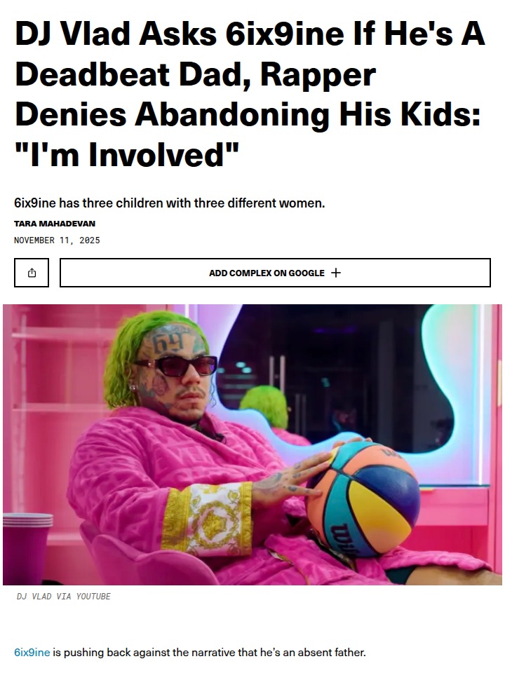 James Hall+Follow6ix9ine Claps Back at 'Deadbeat Dad' Claims 👀DJ Vlad really went there and asked 6ix9ine if he’s a deadbeat dad, and 6ix9ine was NOT having it. He insists he’s involved in his kids’ lives, but Sara Molina keeps calling him out for not providing enough. Fans are split—some say he’s trying, others think he’s just making excuses. Is 6ix9ine being unfairly judged, or is there more to the story? #Entertainment #Celebrity #6ix9ine00Share