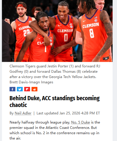 Judith Nelson+FollowACC basketball race heats up behind DukeDuke’s dominance in the ACC is clear, but the real drama is the wild scramble for the No. 2 spot. North Carolina just pulled off a gutsy win over Virginia, shaking up the standings and putting themselves back in the mix. Clemson, Louisville, Miami, and N.C. State are all in striking distance, and every game feels like it could flip the script. With so many teams capable of making a run, the next few weeks are going to be a rollercoaster. Who do you think will emerge as Duke’s biggest challenger? #Sports #ACCbasketball #Duke00Share