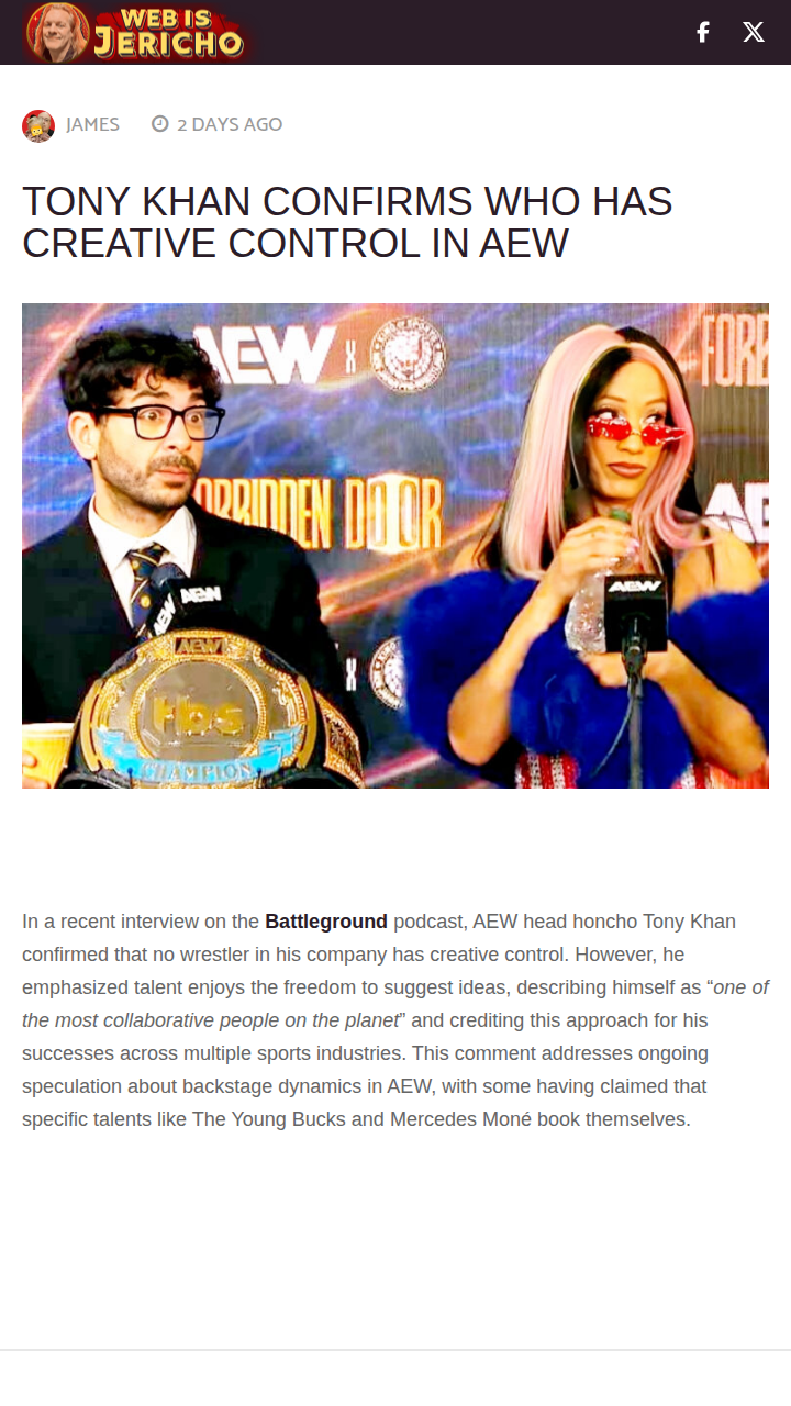reneewang+FollowWho’s Really Booking in AEW? Tony Khan SpeaksBig news for AEW fans! Tony Khan just set the record straight on creative control in All Elite Wrestling. Despite all the rumors about The Young Bucks or Mercedes Moné calling their own shots, Khan confirmed he’s the only one with final say. Still, he says AEW is super collaborative—talent can pitch ideas, but the buck stops with him. Does this squash the drama, or will fans keep speculating about backstage power plays? #Sports #Wrestling #AEW20Share