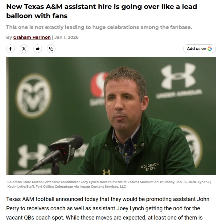 Amy Williams+FollowAggies fans divided over new QB coach pickTexas A&M just promoted Joey Lynch to quarterbacks coach, and it’s stirring up real debate among Aggies fans. After a rocky season at QB, many were hoping for fresh energy and a proven play-caller, not someone already on staff. While some see this as Coach Elko sticking with what he knows, others worry it’s a missed chance to shake things up. Lynch’s track record at Colorado State and Vanderbilt hasn’t wowed anyone, but maybe he’ll surprise us. Do you think continuity is the right move, or should the Aggies have brought in new blood? #Sports #Football #Aggies00Share