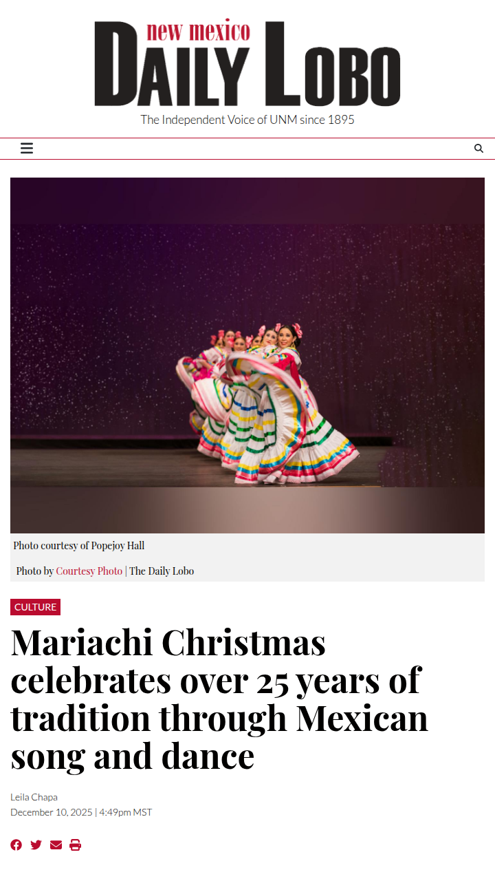 Cameron Frazier+FollowAlbuquerque’s Mariachi Christmas lights up 25 yearsMariachi Christmas is back at Popejoy Hall, bringing a burst of color, music, and dance that’s been a New Mexico holiday favorite for over 25 years. Founded by Noberta Fresquez, who grew up loving Latin music in Deming, this show isn’t just entertainment—it’s a celebration of heritage and community. With award-winning musicians and dancers, each performance shares the rich traditions of Christmas across Mexico, from Jalisco to Veracruz. Whether you grew up with these songs or are discovering them for the first time, it’s a joyful way to connect and celebrate together. Who else has memories of Mariachi Christmas? #Entertainment #Music #Albuquerque00Share