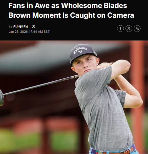 Savannah Smith+FollowBlades Brown's Viral Fan Moment at AmEx 🏌️Did anyone else catch Blades Brown playing rock-paper-scissors with a fan before his tee shot at The American Express? Not only did he let a kid help decide his shot, but he also sealed it with a handshake and then made birdie. Fans are debating if this kind of charisma is what golf needs. Is Brown the next big star because of his personality, not just his game? #Entertainment #BladesBrown #AmericanExpress00Share