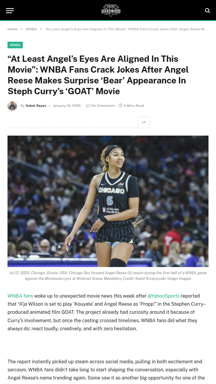 vanessadaniels+FollowAngel Reese’s Animated Debut Sparks Debate 😂Angel Reese popping up in Steph Curry’s new animated film ‘GOAT’ totally caught WNBA fans off guard. The fandom split instantly: some hyped up her mainstream move, while others roasted her with memes (that “at least her eyes are aligned” comment is everywhere). But when Reese clapped back with a chill response, the convo shifted—now it’s all about whether stars should even bother responding to trolls. Drama level: classic WNBA Twitter. #Entertainment #Movies #AngelReese11Share