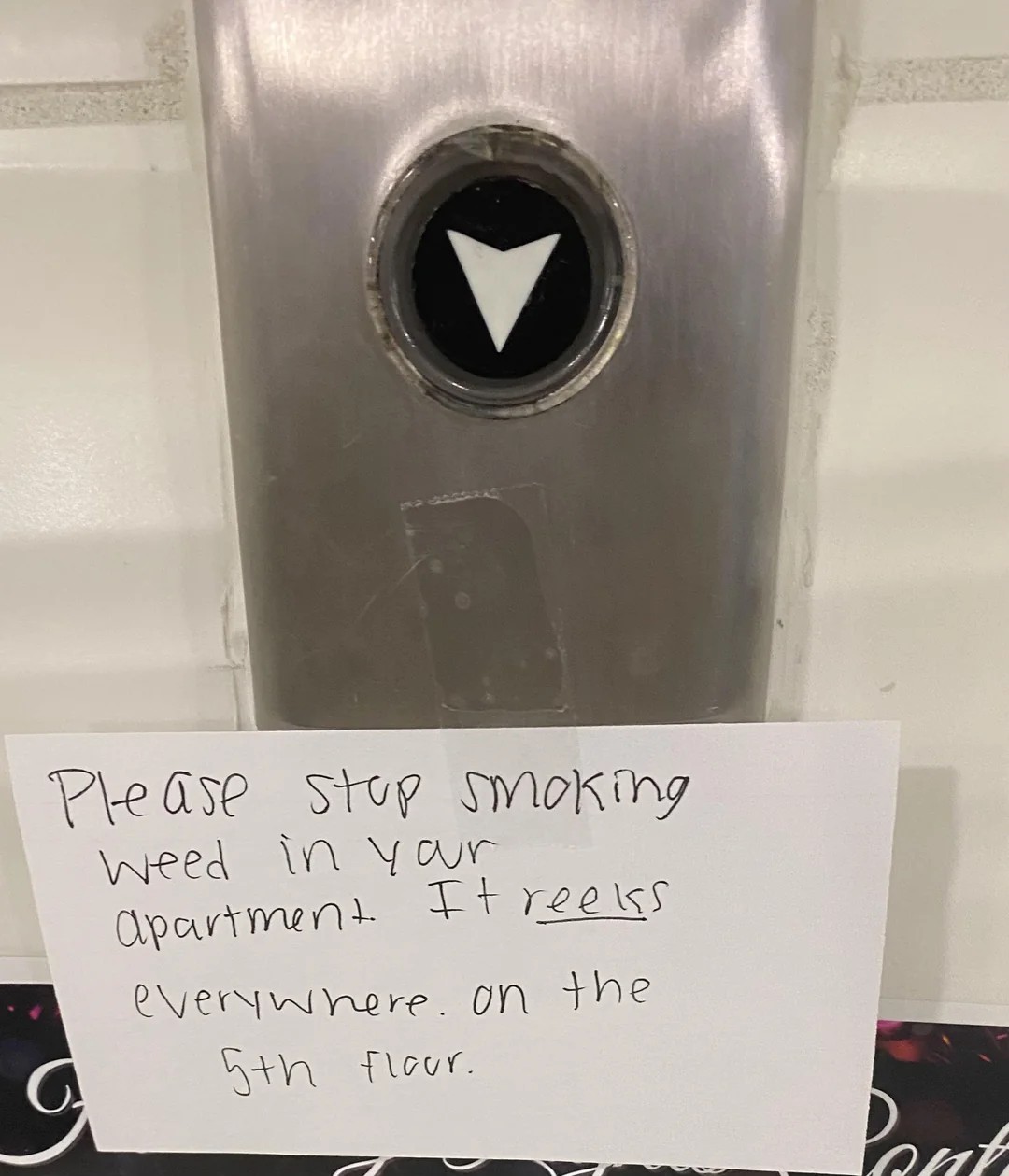 Margaret Mooney DVM+FollowSomeone on the 5th floor is on the wanted listI was just trying to get home today when I ran into this. Apparently one of my neighbors has smoked weed in their apartment and the rest of the floor has finally reached their breaking point. I usually try to stay out of building drama, but seeing this taped up in the lobby definitely made my afternoon a lot more interesting. #ApartmentLiving #NeighborhoodDrama #PassiveAggressive #StoryTime 00Share