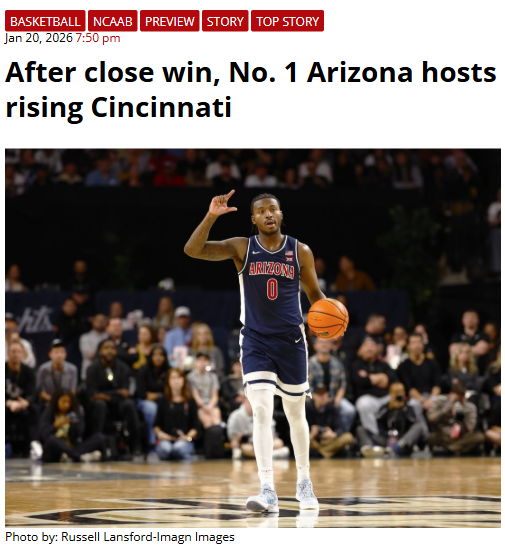 EchoingEagle+FollowArizona’s unbeaten run faces Cincinnati testArizona’s perfect season almost slipped away in Orlando, but the Wildcats held on and now return home to face a surging Cincinnati squad. Even with top scorer Koa Peat struggling and Anthony Dell'Orso going scoreless, Arizona’s depth shined—Jaden Bradley stepped up big time. Cincinnati, meanwhile, just pulled off a huge upset over Iowa State and looks hungry for another statement win. With both teams showing grit and unexpected heroes, Wednesday’s matchup in Tucson could shake up the Big 12 race. Who do you think will rise to the occasion? Let’s hear your predictions! #Sports #ArizonaWildcats #CincinnatiBearcats00Share