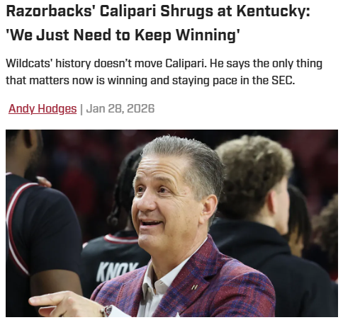 EchoingEagle+FollowKentucky vs Arkansas: Coaches’ showdown heats upJohn Calipari, now at Arkansas, didn’t hold back in praising Kentucky’s Mark Pope, calling him the “right guy” for the Wildcats—even as Kentucky’s season has had its ups and downs. Pope’s early success, including a Sweet 16 run and a record number of big wins, has fans buzzing, but Arkansas is currently outplaying Kentucky in the SEC. With emotions still running high from last year’s dramatic matchup, Saturday’s game in Fayetteville is shaping up to be a must-watch. Who do you think will come out on top this time? #Sports #KentuckyBasketball #ArkansasBasketball00Share