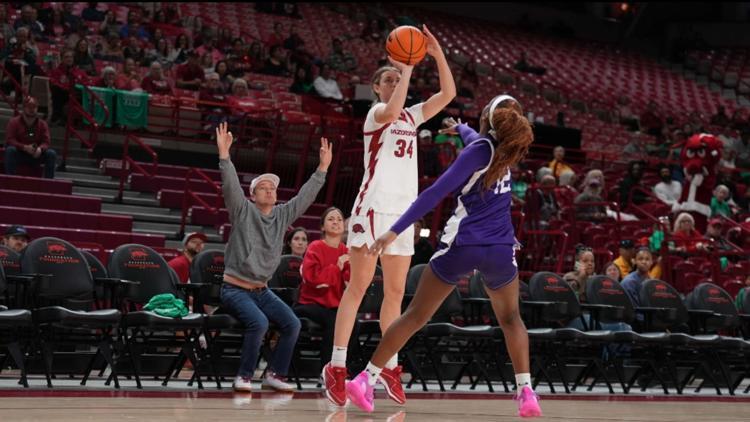 Theresa Boyd+FollowJenna Lawrence powers Arkansas to big winJenna Lawrence just put on a show for Arkansas fans—dropping 24 points and grabbing 11 rebounds for her first double-double of the season! The Razorbacks dominated the boards, out-rebounding Stephen F. Austin by nearly 20, which is their best rebounding effort since 2018. With this win, Arkansas moves to 11-3 and wraps up non-conference play soon. Anyone else think this team is finding its groove at just the right time? Let’s talk about what this could mean for their season ahead! #Sports #Basketball #ArkansasBasketball00Share