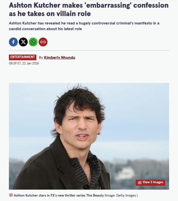 xpotter+FollowAshton Kutcher’s ‘Beauty’ Villain Twist 😳Did anyone else catch Ashton Kutcher admitting he read the Unabomber’s manifesto to prep for his villain role in FX’s ‘The Beauty’? Fans are split—some say it’s method acting genius, others think it’s a step too far. The debate is wild: is Kutcher’s tech mogul character inspired by real-life dark minds, or is this just Hollywood hype? Either way, the drama around his ‘embarrassing’ confession is stealing the spotlight from the show itself! #Entertainment #Celebrity #AshtonKutcher00Share