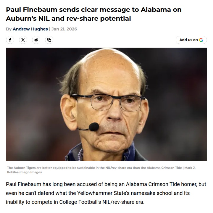 Aaron Taylor+FollowAuburn’s billionaire edge shakes up Alabama footballTurns out, Auburn might have a major advantage over Alabama in the new world of college football, and it’s all about billionaire backing. Paul Finebaum pointed out that Auburn’s got billionaire support for its NIL and revenue-sharing efforts, while Alabama doesn’t have a single billionaire booster. That means Auburn could have more cash to attract top talent, leaving Alabama scrambling for donations from regular fans. With the college sports landscape changing fast, could Auburn leap ahead just because of deeper pockets? What do you think—does money matter more than tradition now? #Sports #Football #Auburn00Share