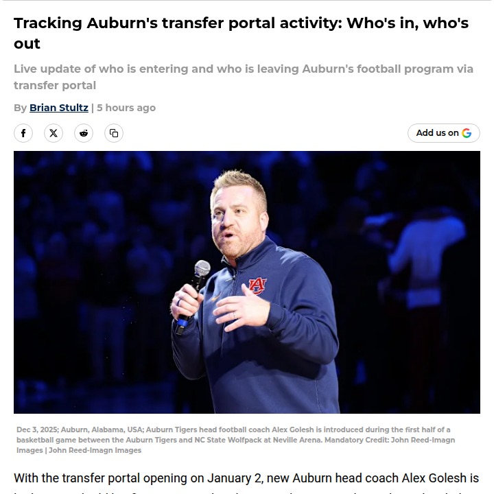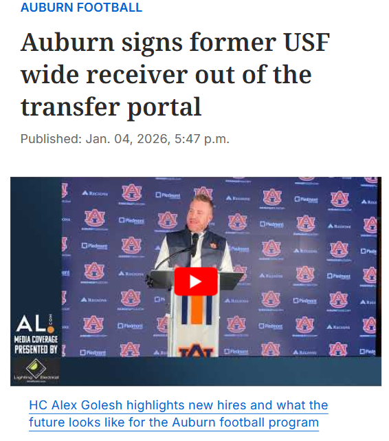 Chad Williams+FollowAuburn’s transfer portal shakeup: What’s next?Auburn’s football roster is about to look very different, with a wave of transfers—many from USF—already moving in and getting settled before classes start. With Alex Golesh at the helm, the Tigers are betting big on blending young talent with experienced veterans, hoping to quickly build chemistry and adapt to new systems. It’s a huge moment for Auburn fans: the next week will reveal which players are sticking around and who’s stepping up. How do you feel about this new era for Auburn football? Can this mix of transfers and recruits deliver results on the field? #Sports #Football #AuburnFootball00Share