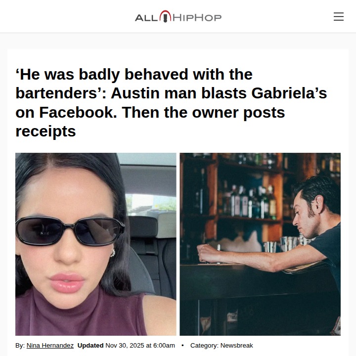 Henry Thomas+FollowAustin restaurant drama: Owner claps back with receiptsWhen a regular at Gabriela’s South in Austin blasted the restaurant on Facebook, the owner didn’t just let it slide—she posted receipts and messages to set the record straight. Despite the party arriving over an hour late, staff still made room for them. But things got heated when the customer complained about the menu and drinks, and allegedly disrespected the bartenders. Other guests from the same party even messaged the owner to distance themselves from the drama. This whole saga has the Austin food community buzzing: Where’s the line between honest feedback and crossing boundaries? #Entertainment #TVSeries #AustinEats00Share